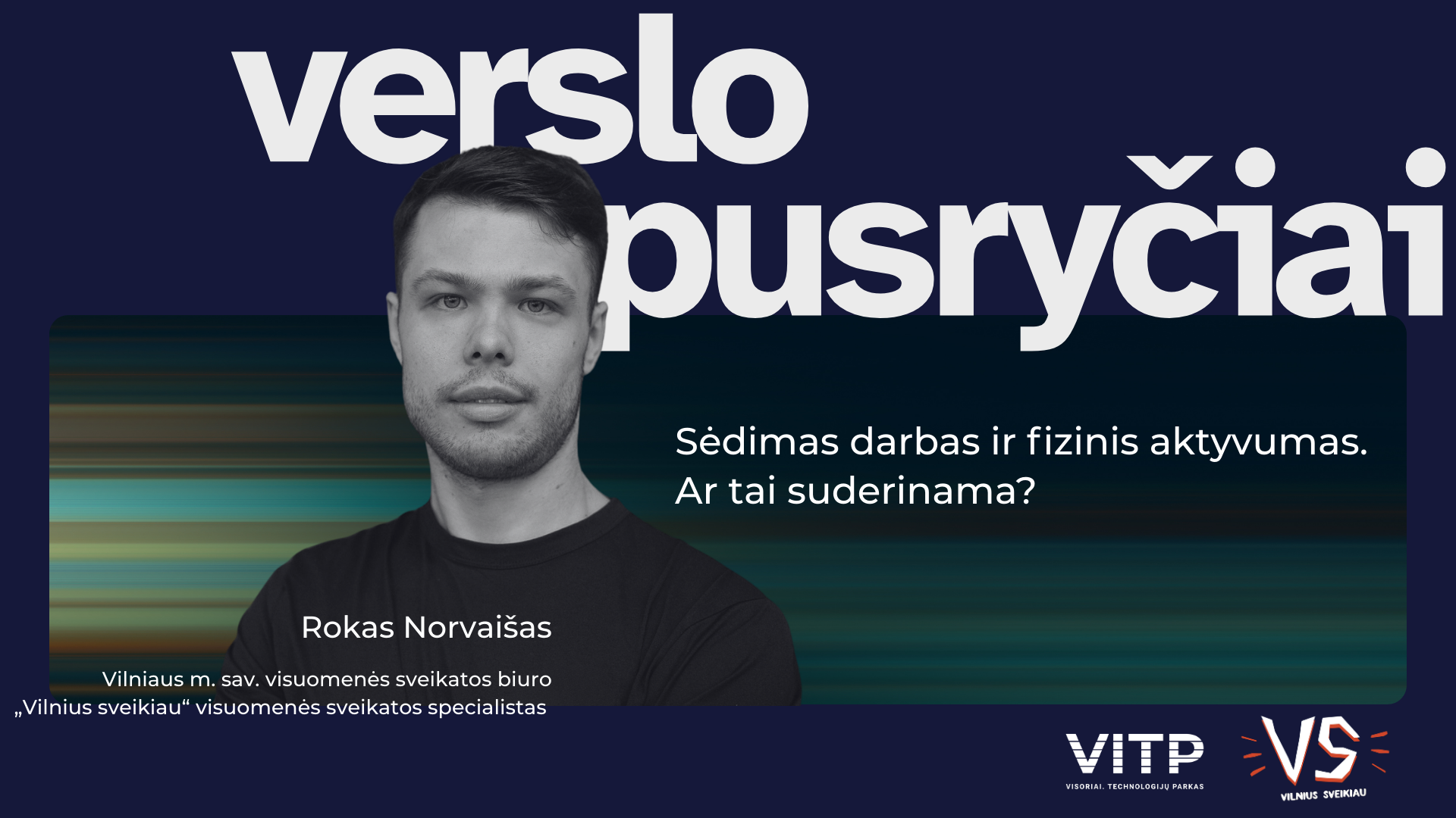 Kviečiame į VITP verslo pusryčius „Sėdimas darbas ir fizinis aktyvumas. Ar tai suderinama?“ su Vilniaus m. savivaldybės visuomenės sveikatos biuro „Vilnius sveikiau“ visuomenės sveikatos specialistu Roku Norvaišu.